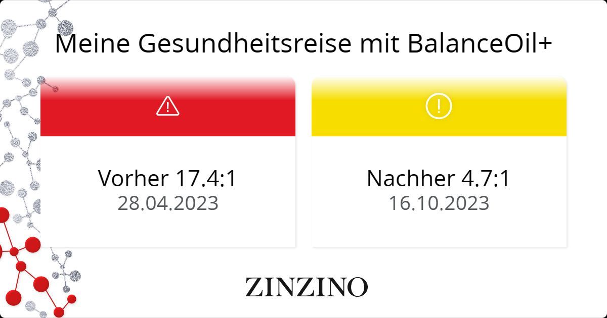Seit diesem Zeitpunkt versorge ich mich und meine Familie mit den Ölen der Firma Zinzino. - Das beste daran, es ist nicht nur gut für unsere Gesundheit, sie sind vom Geschmack total ok. Es ist großartig mich jetzt mit testbasierter Nahrungsergänzung versorgen zu können, da ich weiß - ein zu viel ist ebenfalls nicht zu empfehlen.